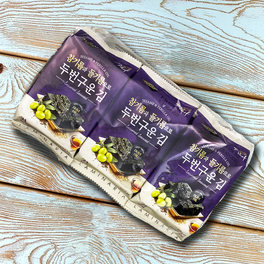 сушеная морская капуста, 52%, кукурузное масло 36,7%,соль 2%, кунжутное масло 3,5%,масло периллы 3,5%,оливковое масло 2% |